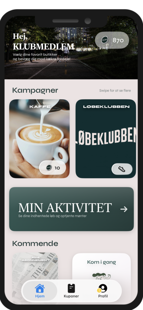 kilometer du løber / går optjener du én klubmønt.